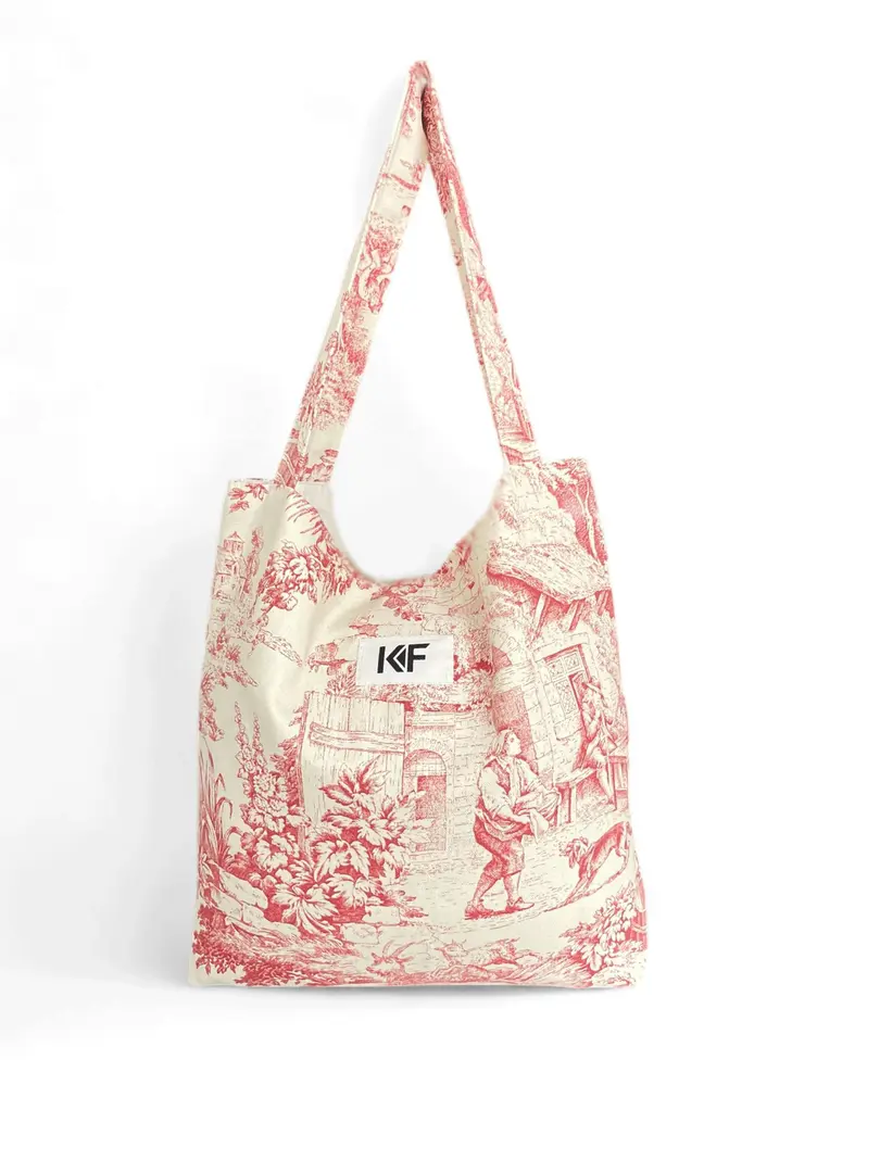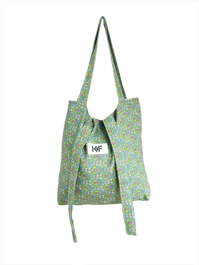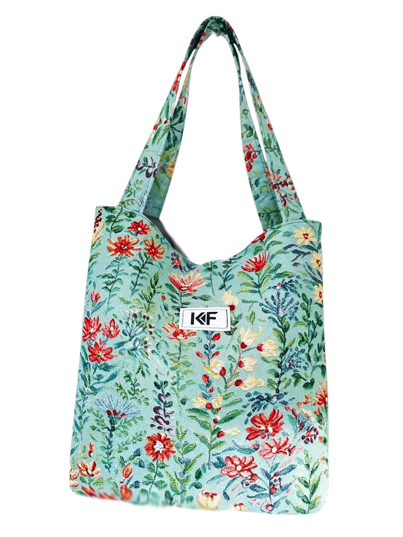 Diese elegante Tote Bag besticht durch ihr traditionelles Blumenmuster in gedämpften Farben.