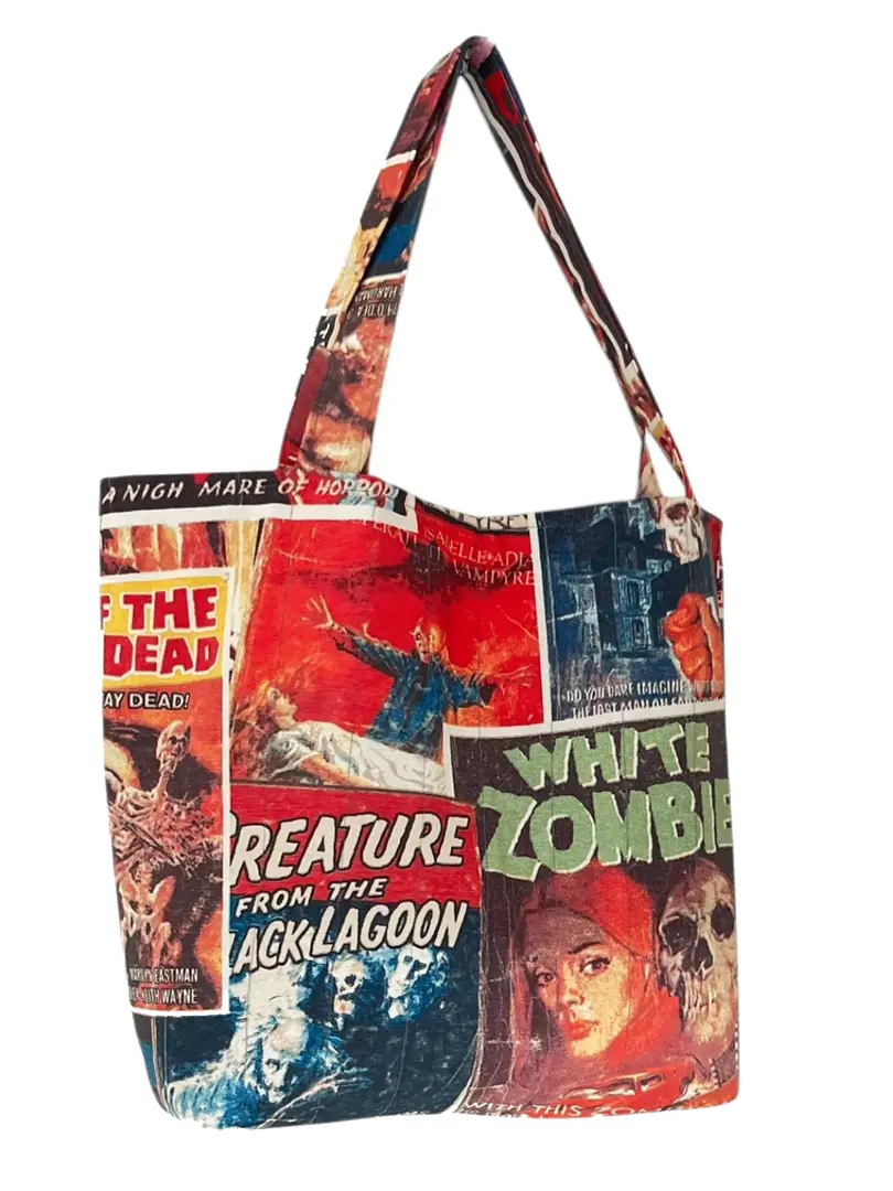 Diese Tote Bag mit klassischen Horrorfilm Covern bringt Retro Charme